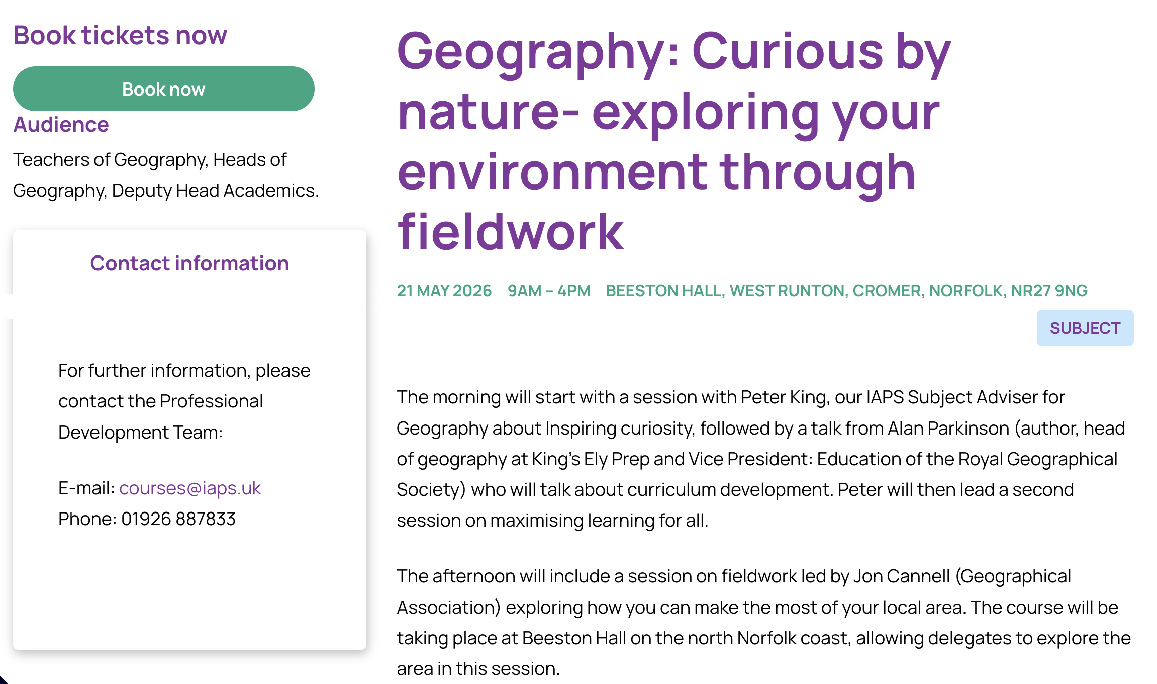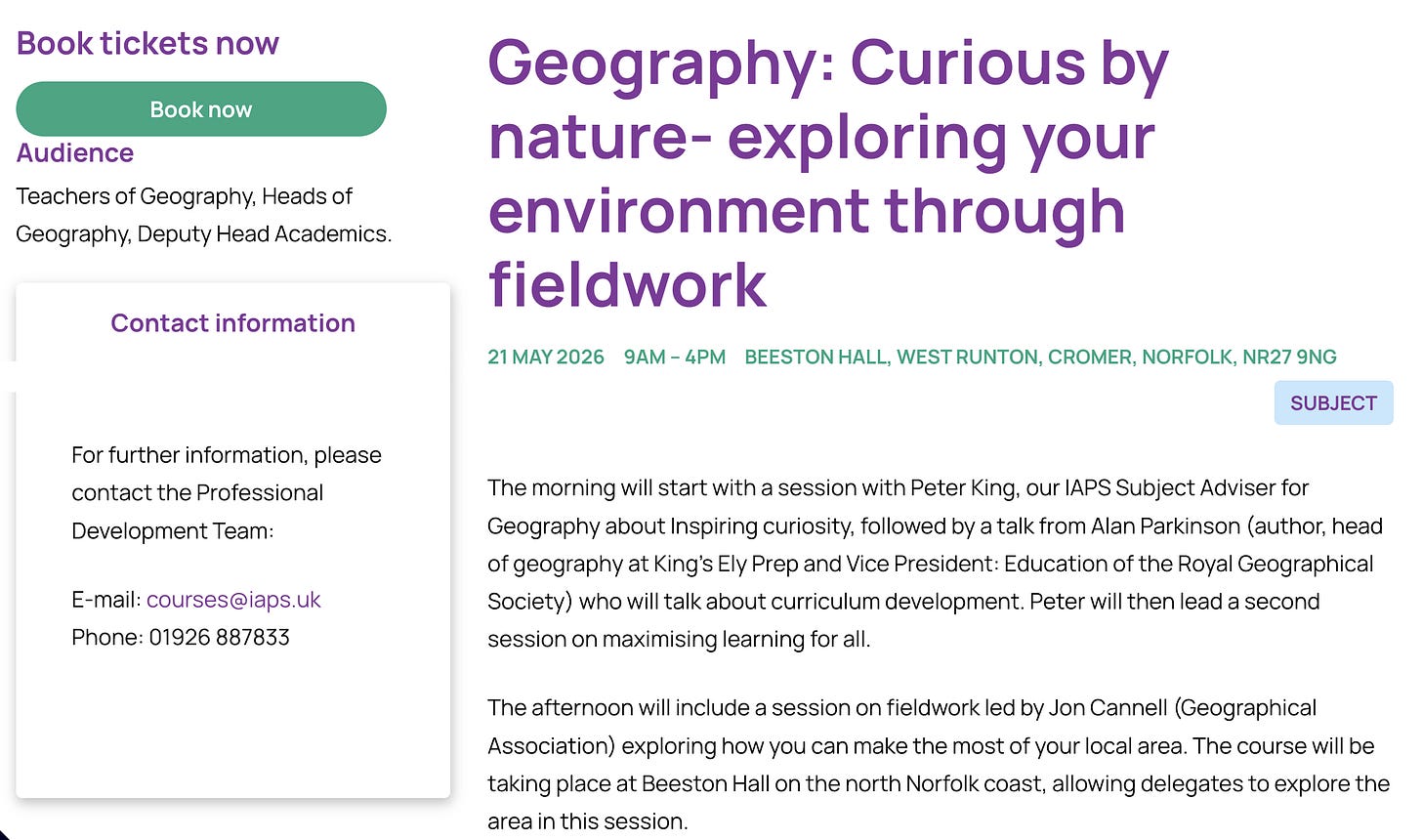 The IAPS National Geography Conference is taking place at Beeston Hall School in Norfolk on the 21st of May.